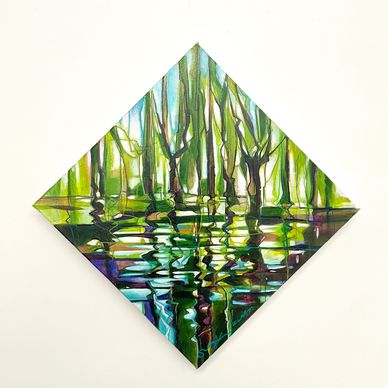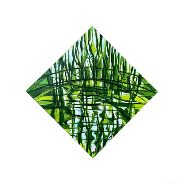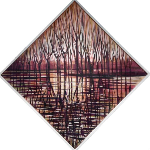 Canvas 112 x 112; sold framed in white pine frame, total size 117 x 117