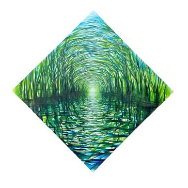 Canvas 140 x 140; sold framed in white pine frame, total size 145x 145